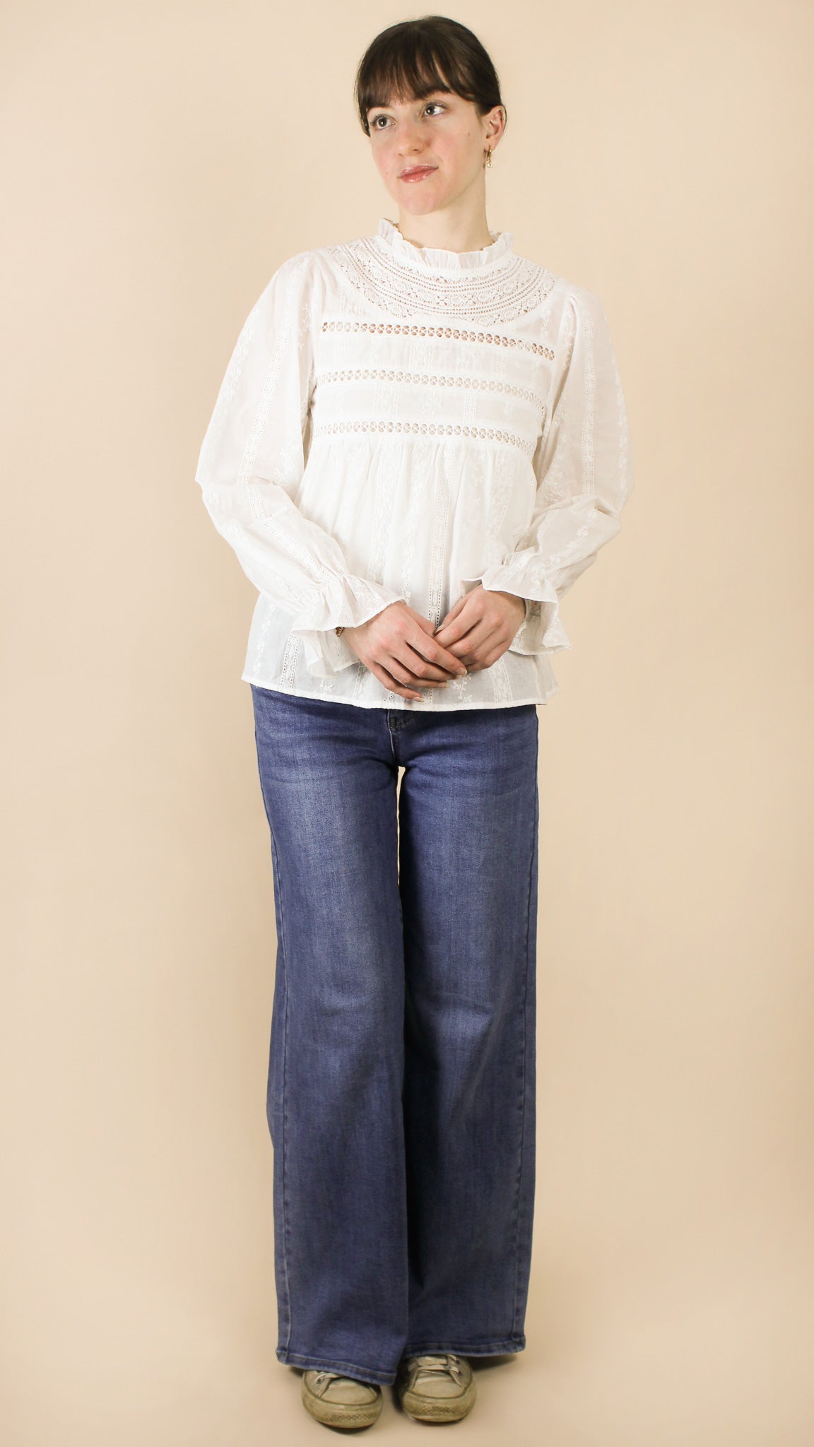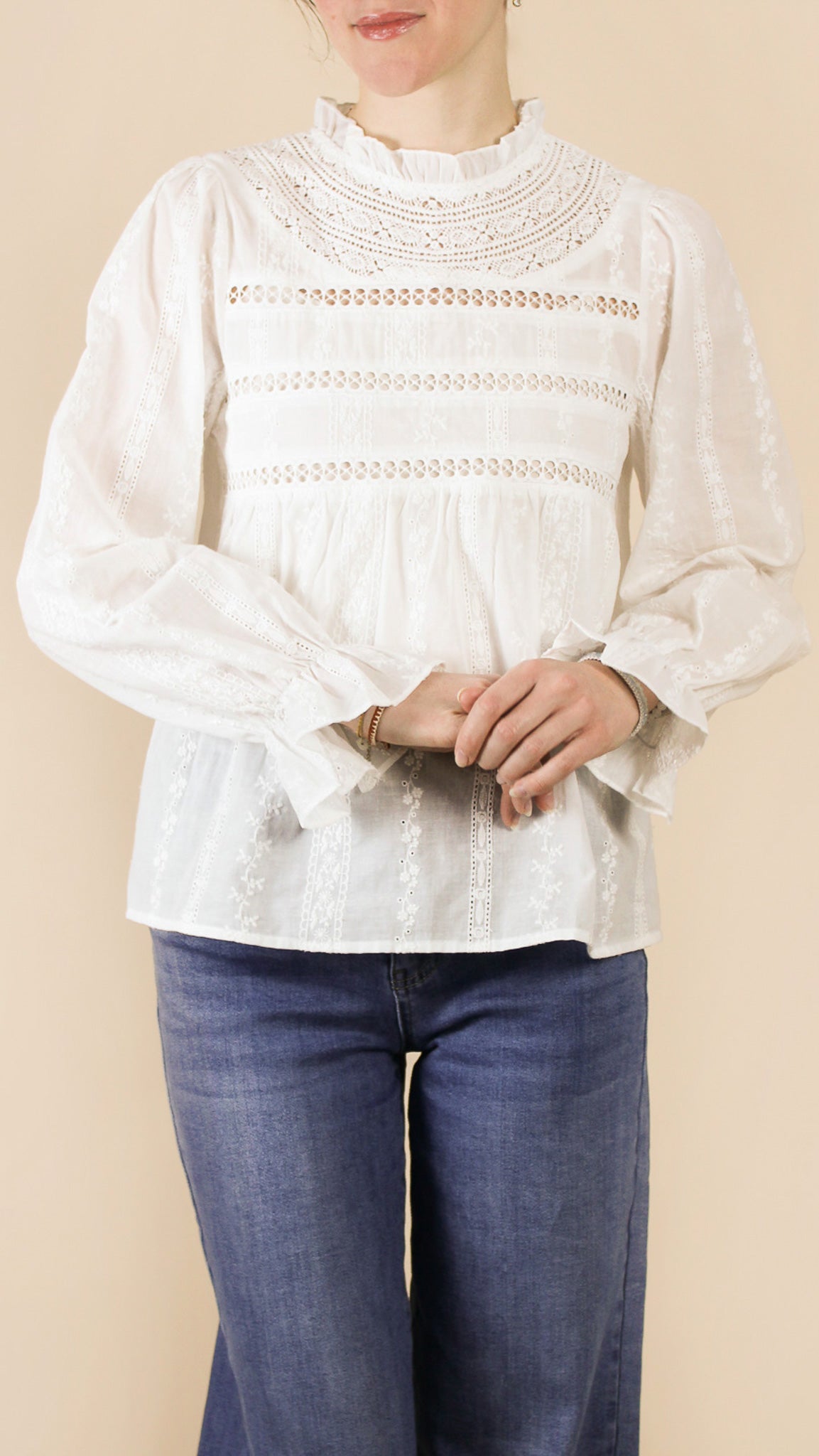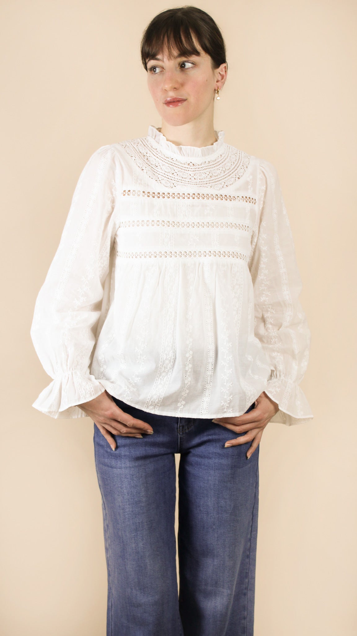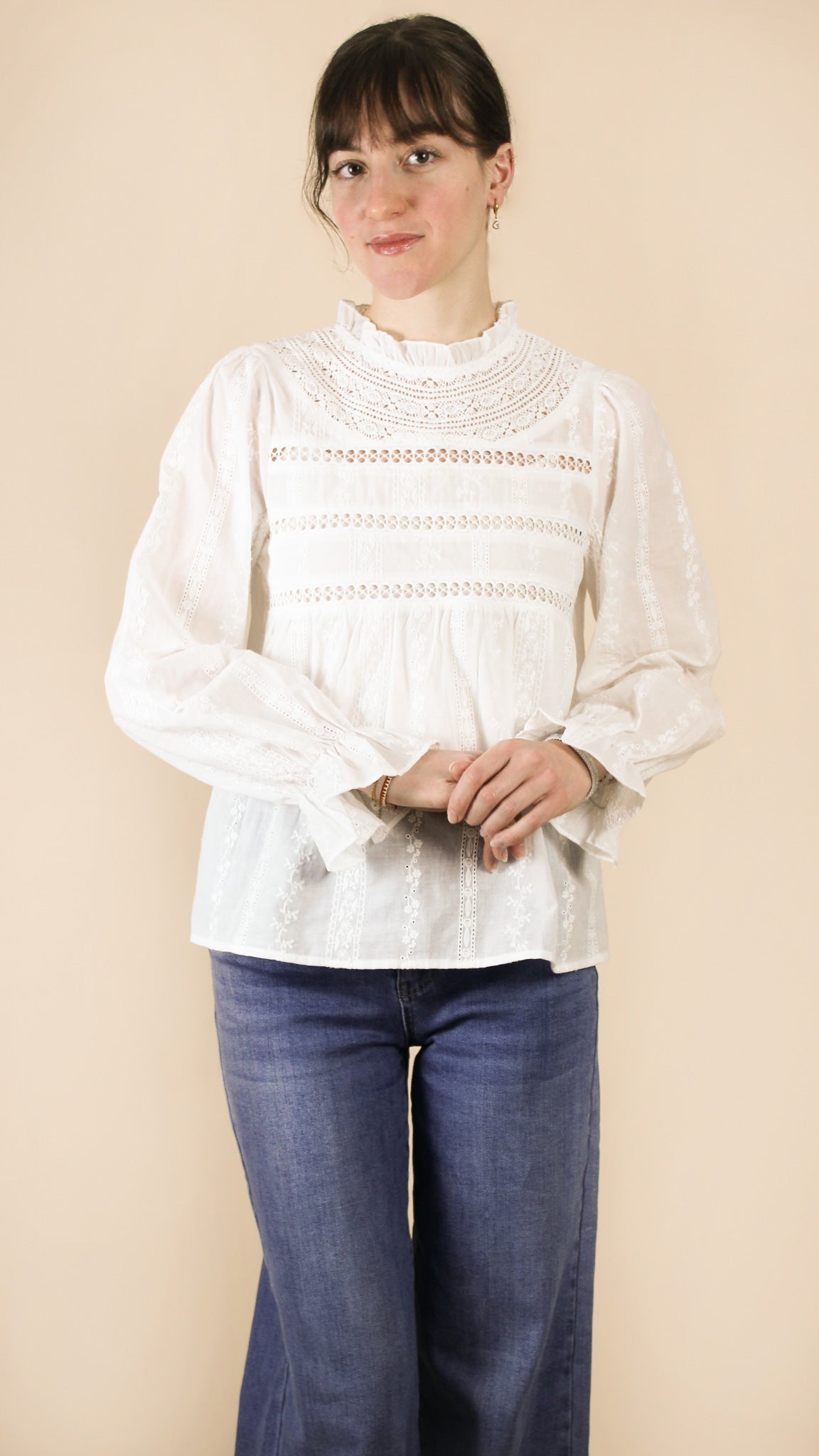 — Blouse à col montant, à manches longues.