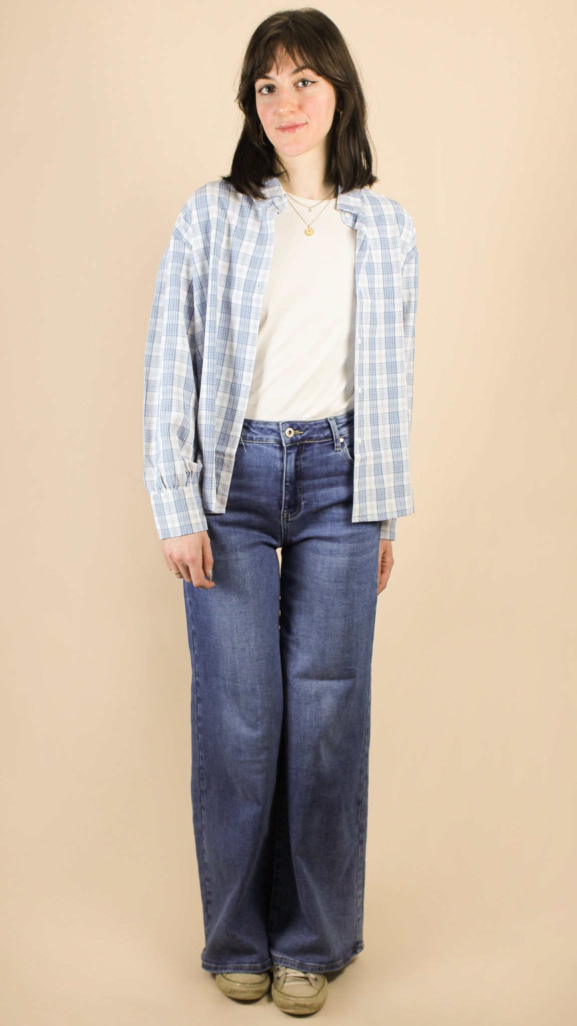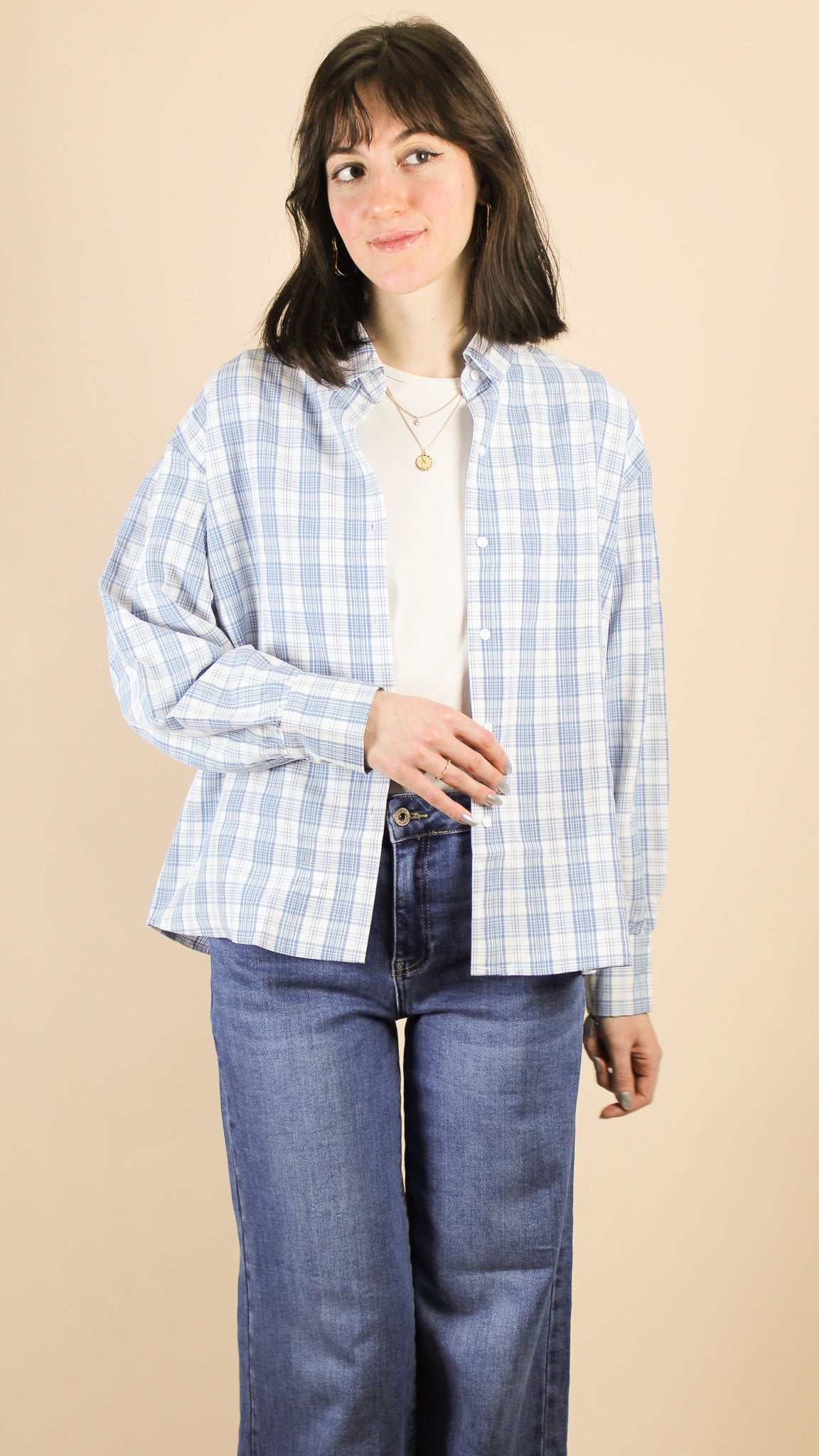 — Chemise à col rond, à manches longues.