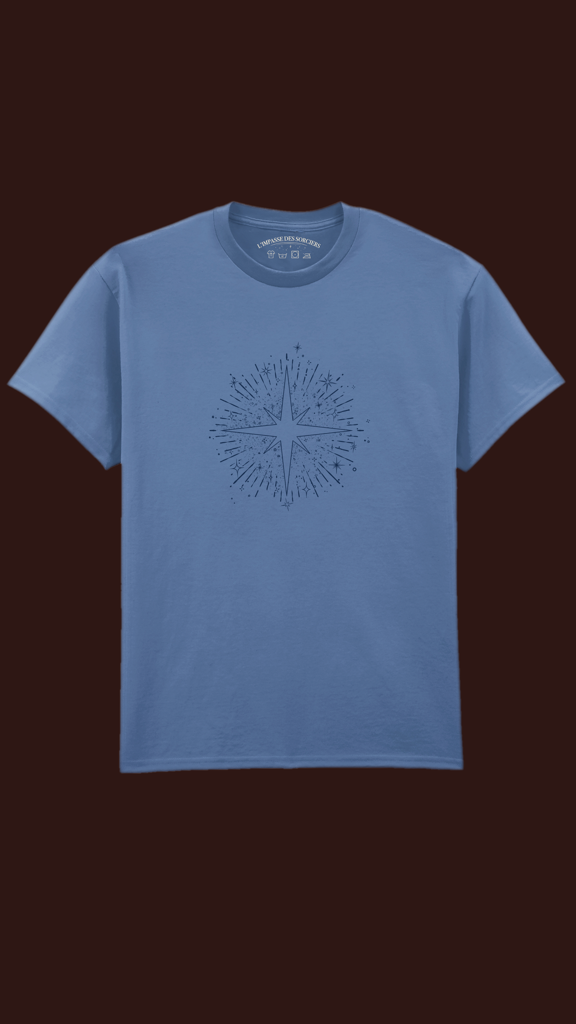 L’Impasse des sorciers célèbre l’éclat de chacun.e à travers un tee-shirt où une étoile suggère que toute lumière existe d’abord par elle-même.