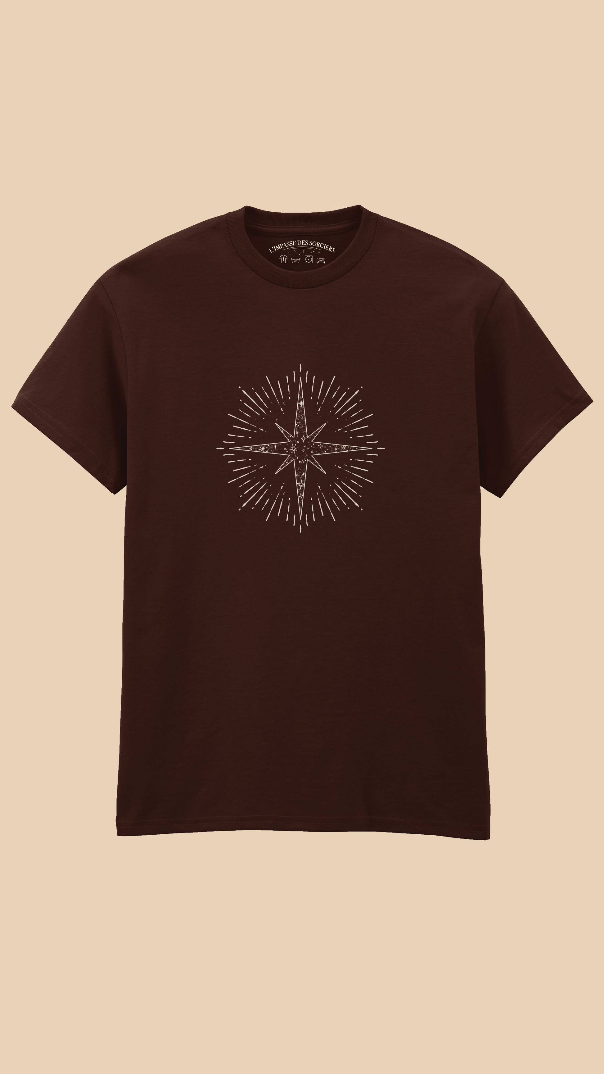 L’Impasse des sorciers célèbre l’éclat de chacun.e à travers un tee-shirt où une étoile suggère que toute lumière existe d’abord par elle-même.