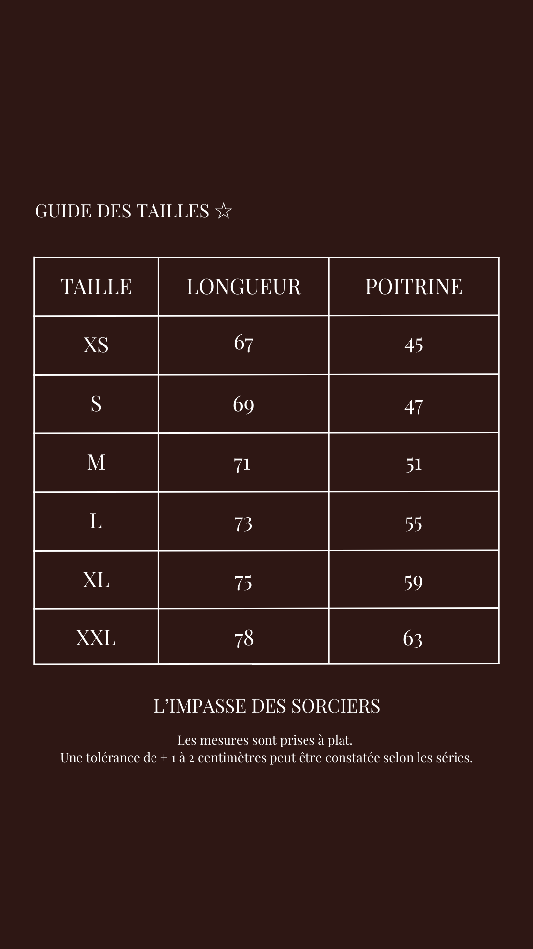 L’Impasse des sorciers met à l’honneur sa muse, Dréa, une sorcière libre qui déploie sa magie et incarne l’esprit de la boutique, rendant ce tee-shirt à la fois symbolique et intemporel.